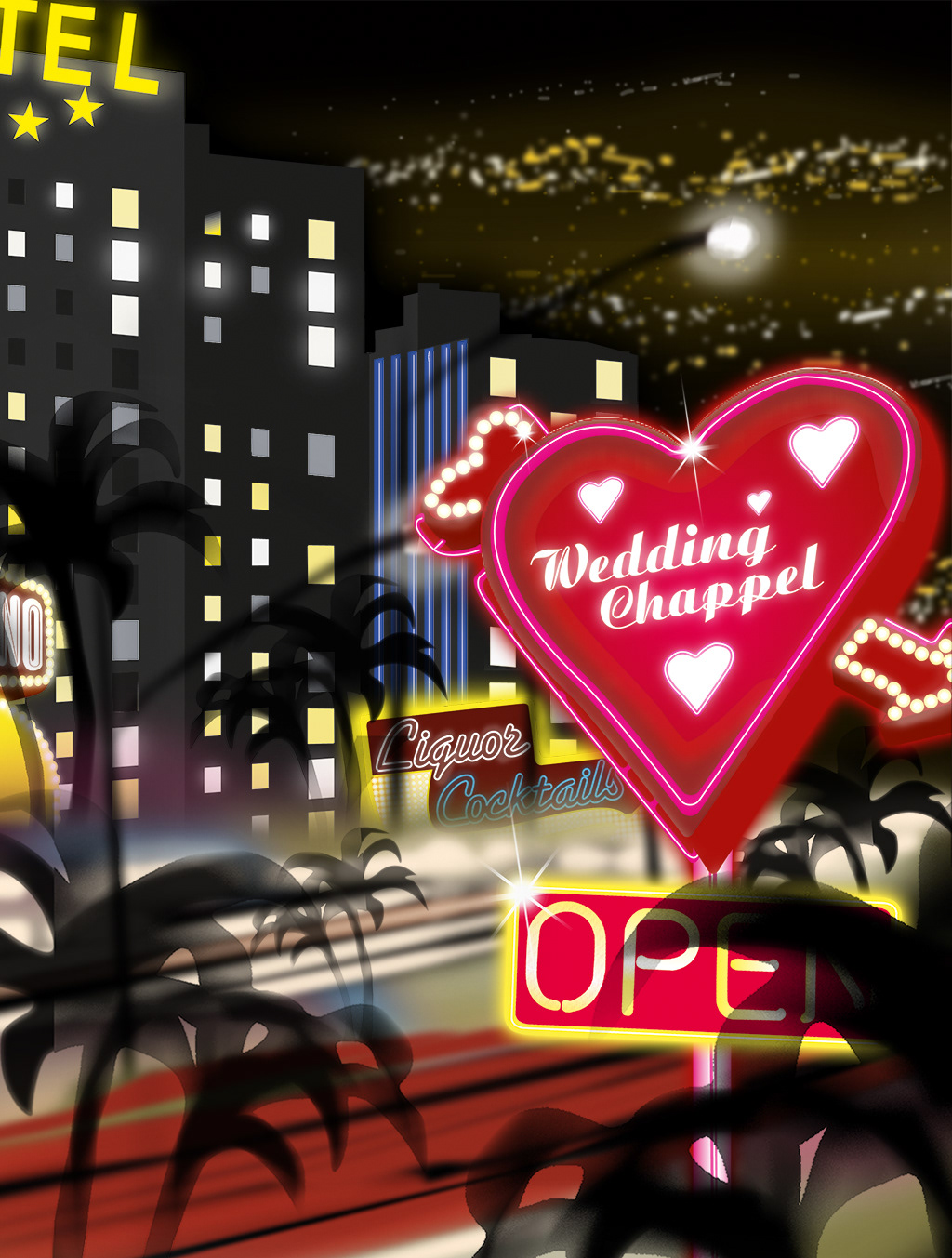 Illustration — Auftraggeber: Springer&Jacoby | Kunden Görtz 17 — "Vegas, Baby!" Das war das Thema für das Schaufensterkonzept von "Görtz 17" und ich setzte die Models in einer Welt aus Lichtern und Leuchtschildern in Szene. — Hamburg 2006