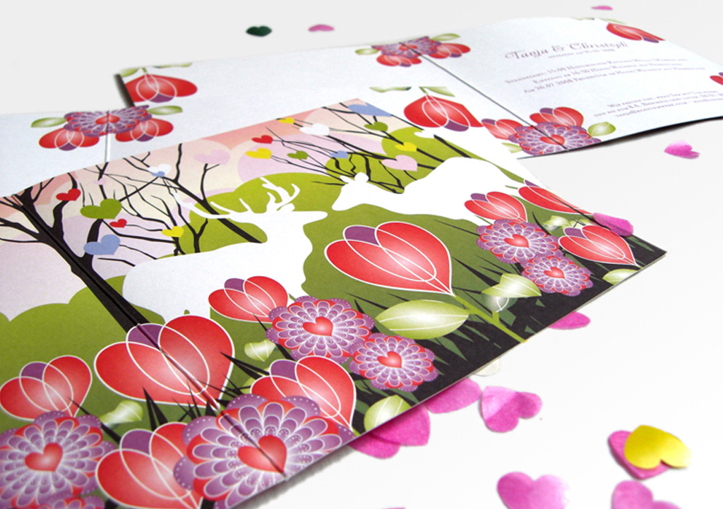 Tanja und Christoph Braun — Hochzeitsdrucksachen, Hochzeits-Corporate Design, Dekoration — Für die 2 verliebten Rehe, Tanja und Christoph entwarf ich alle Drucksachen rund um die Hochzeit. Es wurde sehr bunt, verpielt und romantisch! — Hamburg 2015